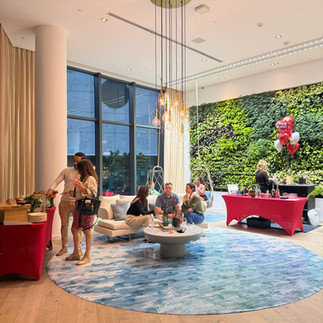 Our teams transformed the towers into warm, festive gathering spaces where neighbors could pause, connect, and celebrate together. Residents were welcomed with beautifully curated charcuterie spreads, delicious nibbles from Aira Miami (now open next to the Gran Paraiso entrance), decadent desserts, and of course, a touch of champagne to toast the occasion.